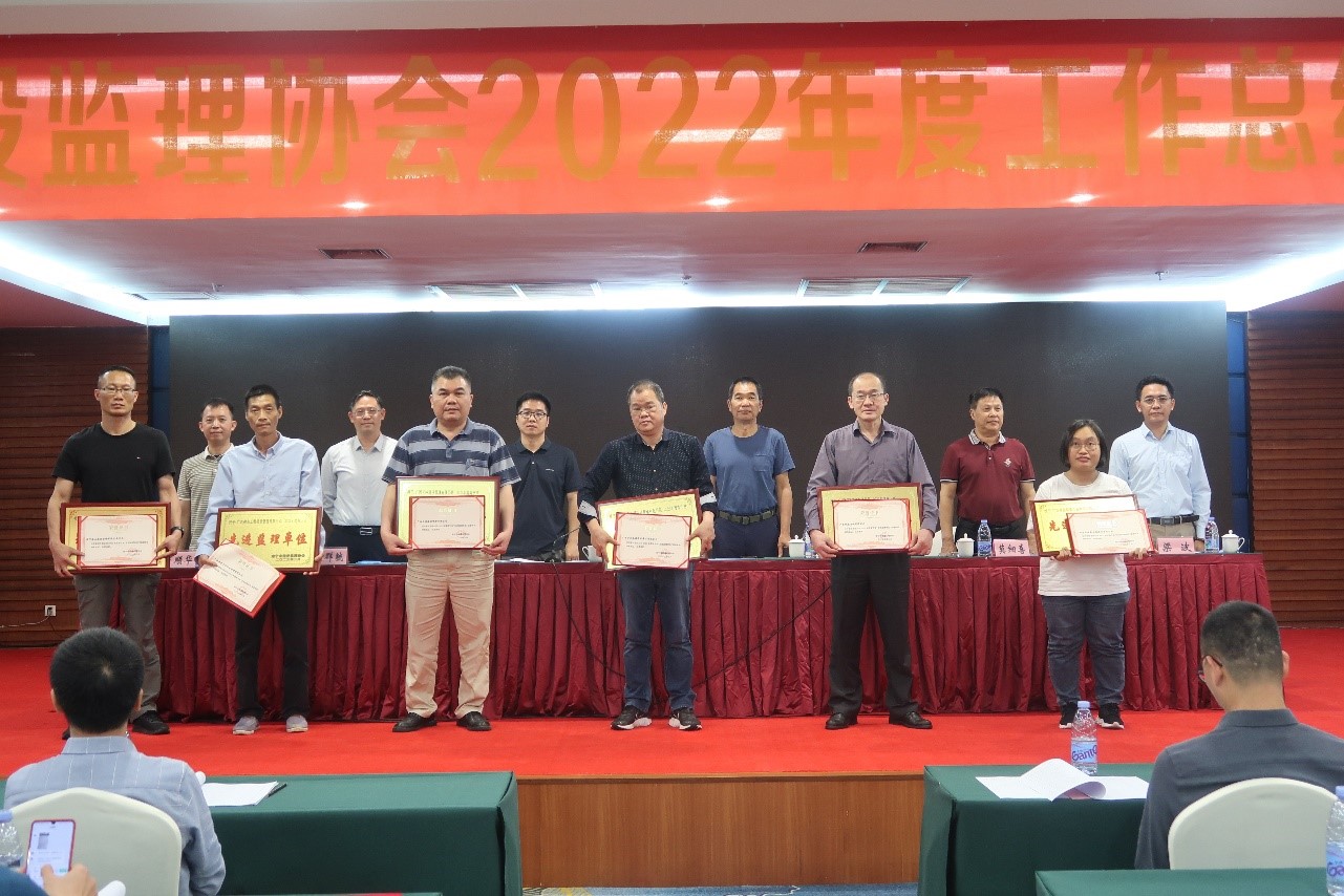 在2022年度南寧市建設(shè)監(jiān)理協(xié)會表彰儀式上,公司行政部主任代表南寧品正上臺領(lǐng)取南寧市建設(shè)監(jiān)理協(xié)會頒發(fā)的“2022年度誠信企業(yè)”和“2022年度南寧市先進監(jiān)理單位”榮譽證書。南寧品正總監(jiān)理工程師姚思清、王騰龍、曾振華、張騰、盧國敏、曾鉦驊、林碧婷等7人榮獲2022年度“南寧市優(yōu)秀總監(jiān)理工程師”稱號,萬立名、劉建琨、莫志良、趙春燕、曹慶、盧軍、楊歡瑜等7人榮獲2022年度“南寧市優(yōu)秀監(jiān)理工程師”稱號,并受到表彰。